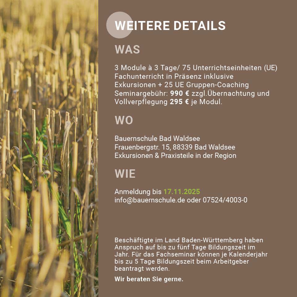 Anmeldung bis zum 17. November 2025 unter info@bauernschule.de